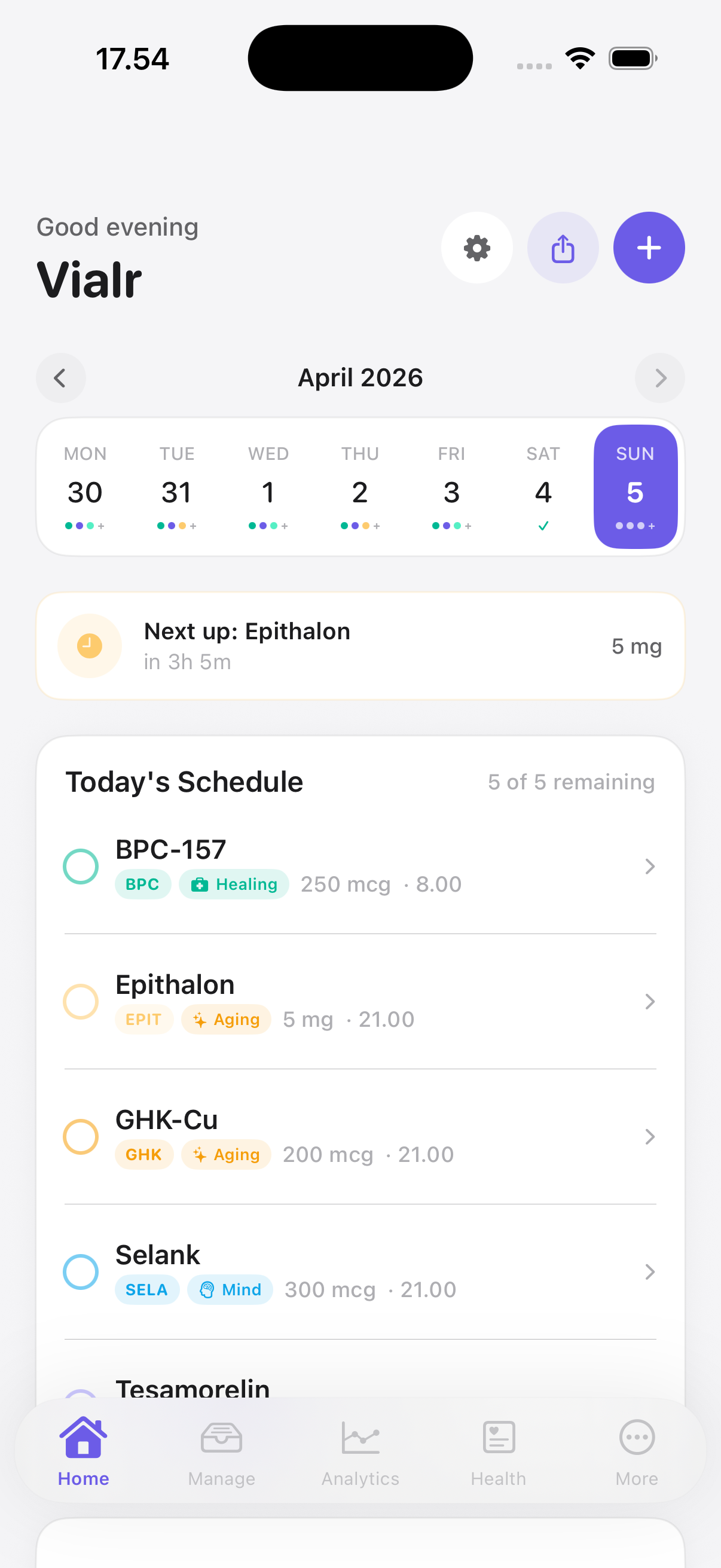Build custom protocols with flexible scheduling. Never miss a dose again.